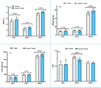 Estos estudios indican que los beneficios de complementar Syrena® Boost, una formulación específica de fitogénicos seleccionados, eficiente para promover el rendimiento del crecimiento de la tilapia, estimular la ingesta de alimento y optimizar la tasa de conversión alimenticia. Todo esto respalda a Syrena® Boost como un producto fitogénico ideal para mejorar la rentabilidad de la producción de tilapia de una manera rentable.